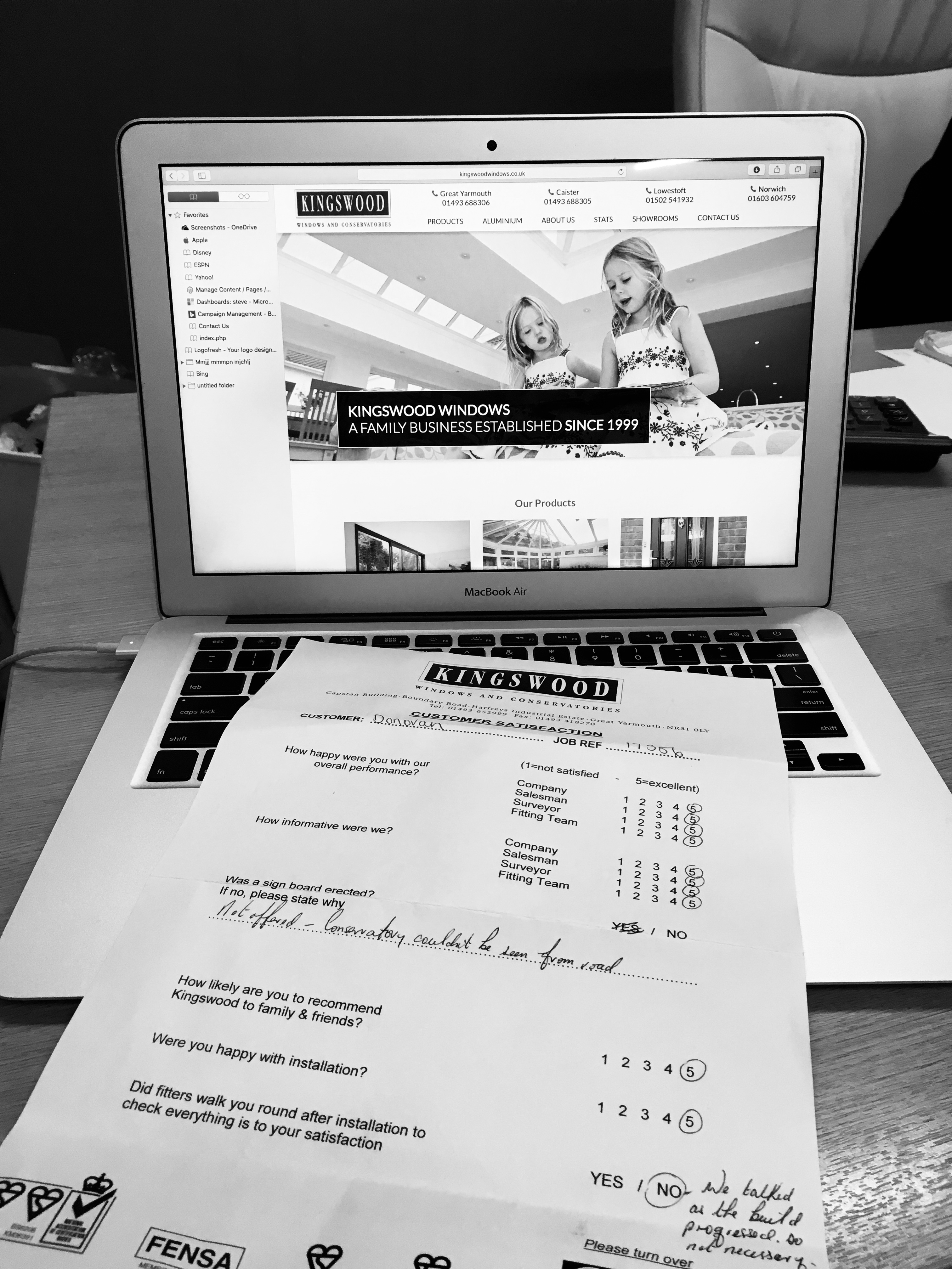 Image showing Kingswood Satisfaction Survey from a client happy with the work carried out by the team.